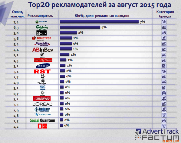 На заседании Комитета ИнАУ по вопросам интернет-рекламы оглашены данные исследований интернет-аудитории Украины за август. Исследование выполняется по заказу ИнАУ компанией Factum Group Ukraine. По итогам августа 2015 г. на базе медиа-панели численностью 5 тыс. человек определен список популярных доменов, посещаемых украинскими пользователями: