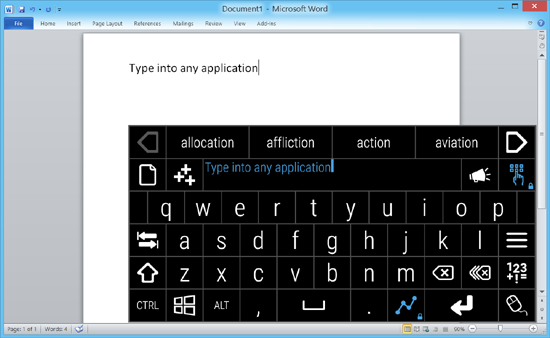 OptiKey поддерживает ряд удобных фич, чтобы ускорить набор текста. Она автоматически добавляет пробелы между словами, делает прописной первую букву предложения, предлагает автодополнение слов.