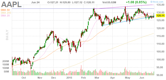С 2012 года по текущий период цена акции компании выросла более чем на 110%, однако при этом среднее значение мультипликатора Р/Е осталось на уровне х15. Подобное может случиться, если знаменатель (то есть прибыль на одну акцию) также увеличился приблизительно на 110%. Если просто просмотреть на динамику годовой прибыли (Net Income) с 2012 года, то отмечается снижение на 5,36% (с $41,733 млрд до $39,510 млрд). Добиться роста показателя прибыли на одну акции при снижении чистой годовой прибыли компания Apple смогла исключительно за счет программы выкупа собственных акций, в процессе которой число бумаг в обращении с 6,631 млрд в 2012 году снизилось до 5,832 млрд в марте 2015-го. По сути рост котировок акций в существенной мере был обусловлен не увеличением прибыльности компании, а выкупом своих же бумаг на рынке — напоминает мыльный пузырь, так как это не может продолжаться вечно.