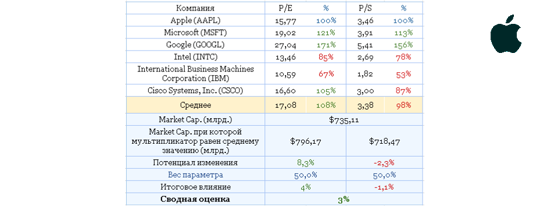 Текущий рассчитанный потенциал изменения капитализации компании предопределяет рекомендацию «держать». Однако, основываясь на изложенных размышлениях и элементах технического анализа, эксперты советуют осторожно отнестись к открытию дополнительных длинных позиций по акциям Apple. Близится отчетность за III квартал, и если показатели продаж iPhone не покажут продолжения взрывного роста, определенная нисходящая коррекция может произойти, заключили они.