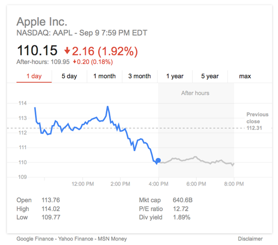 Акции Apple по итогам торгов на Нью-Йоркской бирже подешевели почти на 2%. Представленные новинки компании не вызвали энтузиазма экспертов. iPhone 6s оказался внешне практически неотличим от предшественника, а внутренние изменения некоторых из них не считают ключевым аспектом, который должен подтолкнуть потребителей к обновлению устройства.