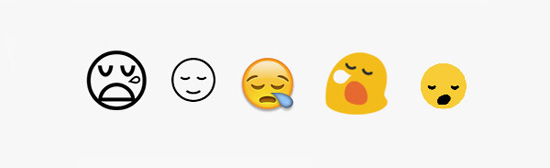 Один и тот же смайлик слева направо: Unicode 7.0, предложенный вариант, Apple, Android, Windows.