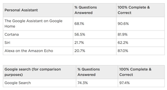 Как показали результаты эксперимента, Google Assistant ответил на наибольшее количество вопросов. Это связали с тем, что Google, в отличие от Apple и Amazon, специализируется на поисковой выдаче. Второе место у Cortana, а за ней следуют Siri и Alexa.