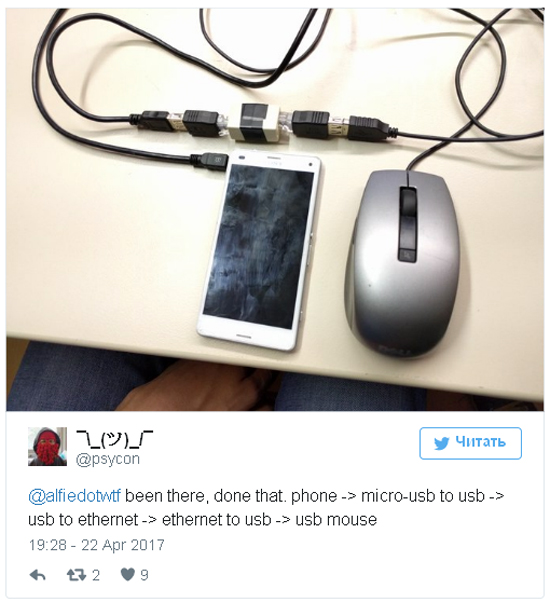 Этот способ нельзя назвать новым. Современные Android-смартфоны позволяют подключить с помощью кабеля OTG и мышь, и клавиатуру. Кое-кто рассказал, что смог так применить даже контроллер игровой приставки PS4.