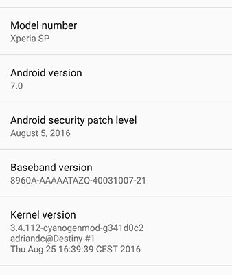 Пользователь Adrian DC разместил на форуме xda-developers скриншоты со смартфона Sony Xperia SP, согласно которым на указанной модели энтузиаст сумел запустить новейшую версию ОС Android 7.0 Nougat. Ожидается, что первым устройством, на котором будет установлена новая версия платформы, должен стать LG V20.