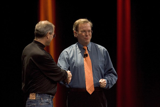 Джобс и Шмидт сидели на веранде одного из кафе в Калифорнии и обсуждали развитие мобильной операционной системы Android. Стив настаивал на том, что открытая операционная система была основана на интеллектуальной собственности, созданной Apple. Эрик ответил, что при разработке не использовались ноу-хау Apple, а Android был основан на собственных разработках. Но этот аргумент не подействовал на Джобса, и Эрик понял, что Apple будет бороться с Google.