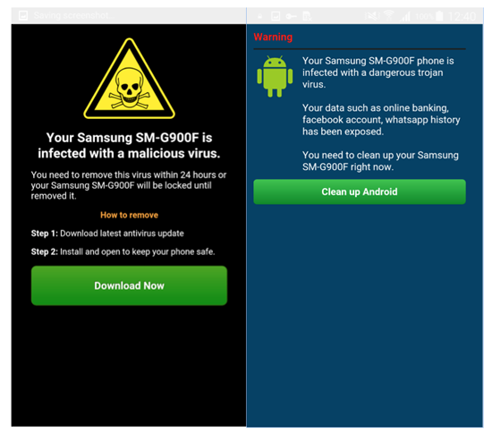 В основном такие подделки, это обычная adware, то есть приложения отображающие навязчивую рекламу, однако эксперты обнаружили в Google Play и более опасные версии Prisma. Так, некоторые клоны подписывают жертв на платные SMS-сервисы, а другие и вовсе запугивают, сообщая, что устройство заражено страшными вирусами (см. иллюстрацию ниже).