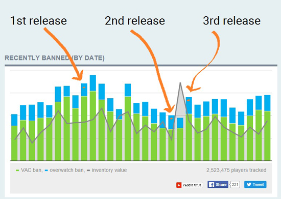 «В первых двух программах был таймер, по истечении которого активировался функционал, позволяющий определить читеров системой VAC. Это значит, что баны активировались в определенное время, к примеру, в 10 часов вечера в день релиза. Последний хак, который собрал 3,5 тысячи скачиваний позволял системе моментально выявить нечестных игроков, как только они зайдут в игру», — рассказал автор.