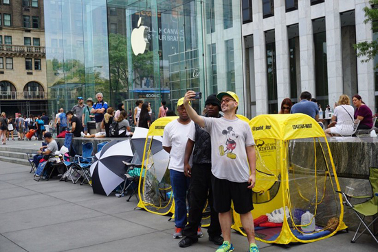 Официальный старт продаж смартфонов Apple нового поколения намечен на пятницу, 16 сентября, но уже за неделю до этой даты перед фирменными магазинами компании начали выстраиваться очереди. Фотофакт этой традиционной американской забавы в редакцию Onliner.by прислал прямиком из Нью-Йорка читатель Виктор.