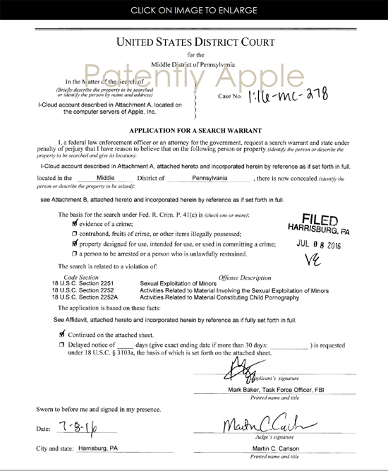 Изданию Patently Apple удалось выяснить, что 8 июля этого года Федеральное бюро расследований США направило в суд штата Пенсильвания требование о предоставлении ордера на изучение облачных данных одного из пользователей iCloud. Оперативники предполагают, что полученные данные могут помочь установить причастность подозреваемого к распространению детской порнографии.
