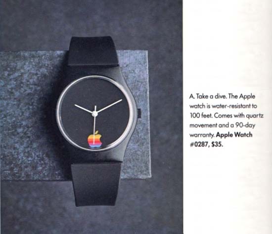 Пользователи интернета обнаружили на ресурсе Imgur снимки, на которых изображена коллекция модных аксессуаров, выпущенная Apple три десятка лет назад. В каталоге, в частности, присутствуют кварцевые наручные часы, которые называются так же, как новинка 2015 года выпуска, — Apple Watch. О них все благополучно забыли и не вспоминали до появления «умной» модели.