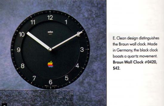 Кроме того, в каталоге товаров Apple представлены настенные часы, произведенные немецкой компанией Braun.