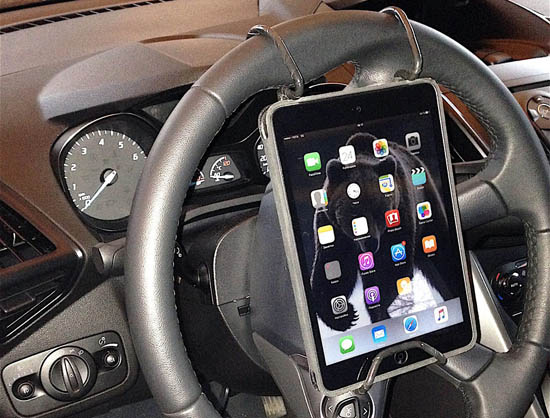 Фотофакт: автомобилист закрепил iPad на руле автомобиля