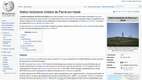 В начале марта сотрудники DCRI в первый раз связались с Википедией и потребовали немедленного удаления из французского раздела энциклопедии статьи о военной радиостанции, которая содержит засекреченную информацию. Википедия отказалась выполнить запрос, сославшись на недостаточные основания для принятия такого решения.