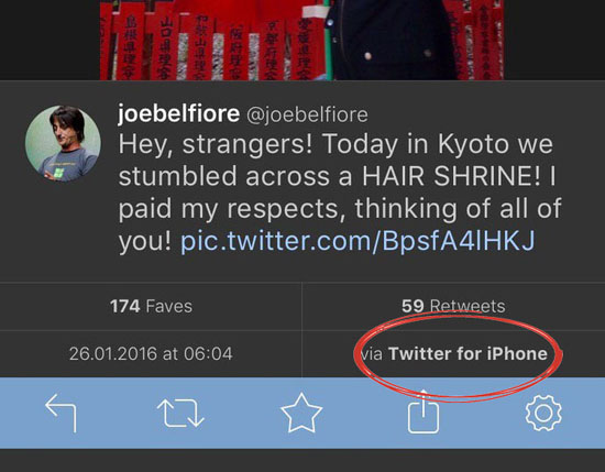 Белфиоре имел неосторожность опубликовать в своем микроблоге фото из отпуска. Топ-менеджер сменил не только цвет прически, но и телефон. Случайно или намеренно руководитель, отвечающий за смартфоны, планшеты и ПК в Microsoft, опубликовал фотографию с iPhone. Снимок сопровождает красноречивая надпись «Опубликовано с помощью Twitter для iPhone». Твит вызвал особенно пристальное внимание прессы, а поклонники Microsoft не стерпели измены и принялись критиковать функционера в социальных сетях.