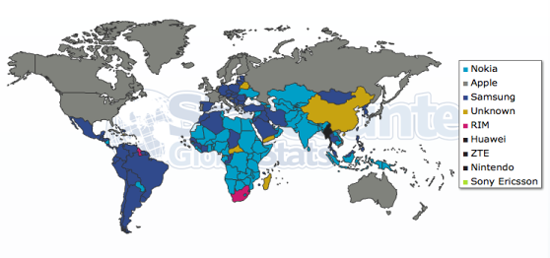 Apple – на севере, Nokia – в Африке, а Samsung – в Южной Америке. Исследование компании StatCounter показало, что мир уже прочно поделен между производителями телефонов:
