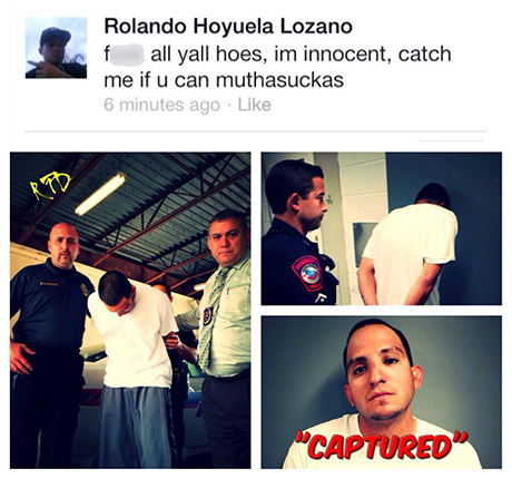 У неділю два брати, Даміан і Роландо Лозано, пограбували 17 автомобілів у місті Розенберг, штат Техас. Поліцейським вдалося затримати лише одного з братів, Даміана. Після цього поліцейські розмістили на сторінці в Facebook інформацію про другого брата Лозано.