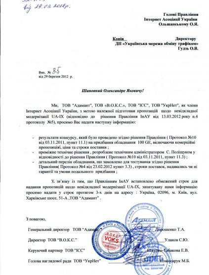 Группа действительных членов ИнАУ требут от правления информацию по UA-IX
