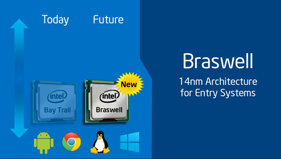 Процессоры Braswell также будут устанавливаться в бюджетные лэптопы под управлением Windows. Кроме того, чипы подходят для использования в планшетах и десктопах начального уровня.