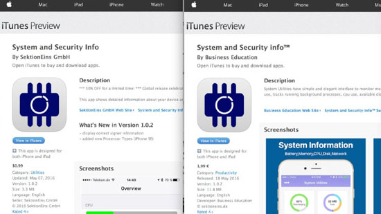 Несмотря на все предпринимаемые разработчиком меры, в течение нескольких последних лет вредоносное ПО распространялось на устройства в обход строгих ограничений путем эксплуатации ошибок дизайна. Такими вредоносами являются WireLurker, YiSpecter, XCodeGhost, ZergHelper и AceDeceiver.