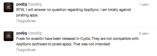 Если верить pod2g и Planetbeing, то хакеры не собираются исправлять несовместимость с AppSync, вследствие чего пользователям iдевайсов с iOS 6.1 и джейлбрейком придется отказаться от взломанных приложений или смириться с багами системы.