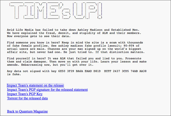 В подтверждение своих намерений хакеры тогда опубликовали часть данных и потребовали закрытия двух сайтов, принадлежащих владельцу Ashley Madison.