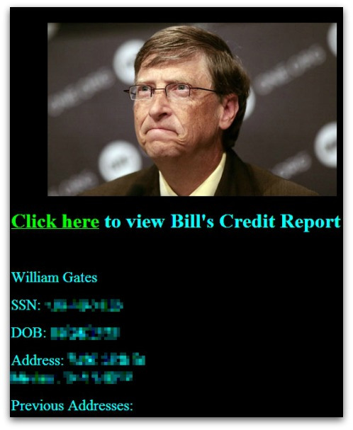 Не успели мы рассказать о грандиозной утечке персональных данных целого ряда знаменитых людей США, как хакеры, сидящие на домене, зарегистрированном для Советского Союза, выложили новую информацию. В частности, ими была опубликована кредитная история Билла Гейтса (Bill Gates).