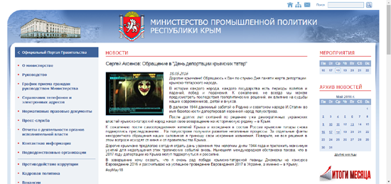 Falcons Flame и Trinity взломал один из сайтов оккупантов Крыма и от имени ставленника Кремля Сергея Аксенова опубликовал обращение в связи с 72-й годовщиной депортации крымских татар.