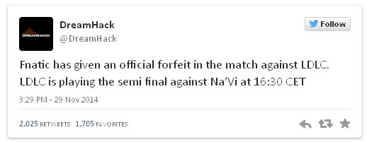 В четвертьфинале крупного турнира Dreamhack по Counter-Strike: Global Offensive с призовым фондом $250 000 шведская команда Fnatic встречалась с французской командой LDLC. В определённый момент времени шведы начали использовать новый хитрый приём против соперника — и благодаря этому одержали фантастическую победу.
