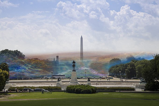 Художник и исследователь Николай Ламм показал, как бы выглядел Wi-Fi-сигнал, если бы мы могли его видеть. «Я ввёл в Google вопрос: „Что, если мы могли бы видеть Wi-Fi?“, и я не смог ничего найти, поэтому решил вообразить сам», — заявил Ламм. В итоге художник создал визуализацию того, как волны Wi-Fi выглядели бы в Нэшнл Молл в Вашингтоне. Ламм использовал данные и 3D-фигуры НАСА, которые помогли воссоздать размеры и частоту волн, сообщает FastCoExist.