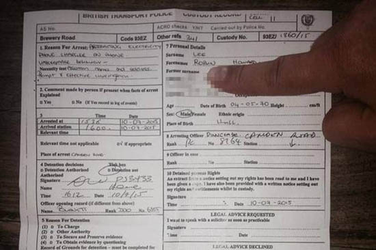 Путешествуя на одном из лондонских поездов, британский художник Робин Ли воспользовался, казалось бы, общедоступной розеткой внутри вагона и подключил к ней свой смартфон. За это на станции при выходе из поезда его встретила местная полиция, арестовавшая господина Ли сразу за несколько нарушений.