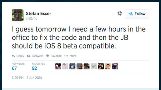 Известный в джейлбрейк-среде разработчик Стефан «i0n1c» Эссер считает, что iOS 8 beta 1 легко может быть взломана при помощи существующих методик. Искать специализированные уязвимости и разрабатывать принципиально новые эксплоиты не придется, написал он в твиттере.