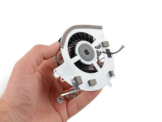 До радиатора и вентилятора системы охлаждения можно добраться только после извлечения блока питания, который, кстати, универсальный и работает в диапазоне от 100 до 240 В — чтобы пользоваться приставкой по всему миру, необходимы лишь разные насадки для розетки.