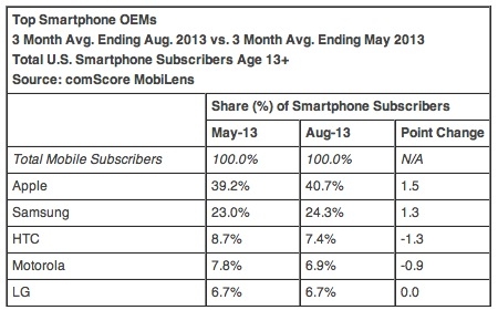 Кроме того аналитики отмечают, что продукты от Apple так же показывают хороший рост своей доли на рынке, опережая темпы прироста Samsung. К развитию других компаний аналитики больших надежд не испытывают, поскольку тенденции достаточно печальны: HTC потеряла 1,3%, Motorola упала на 0,9%, а доля LG осталась без изменений.
