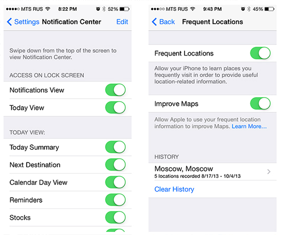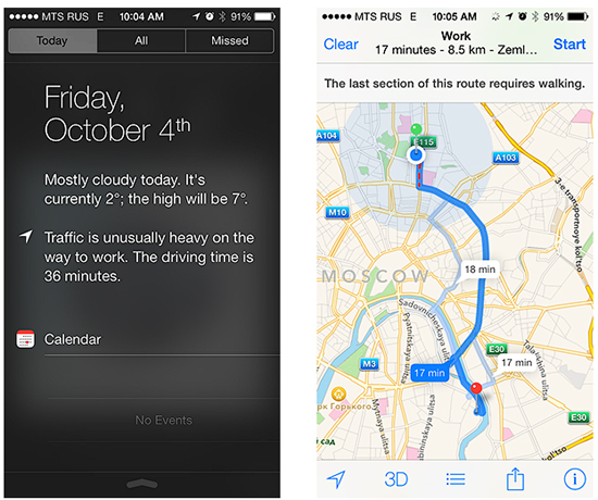 iOS 7: автомобильные пробки в Центре уведомлений