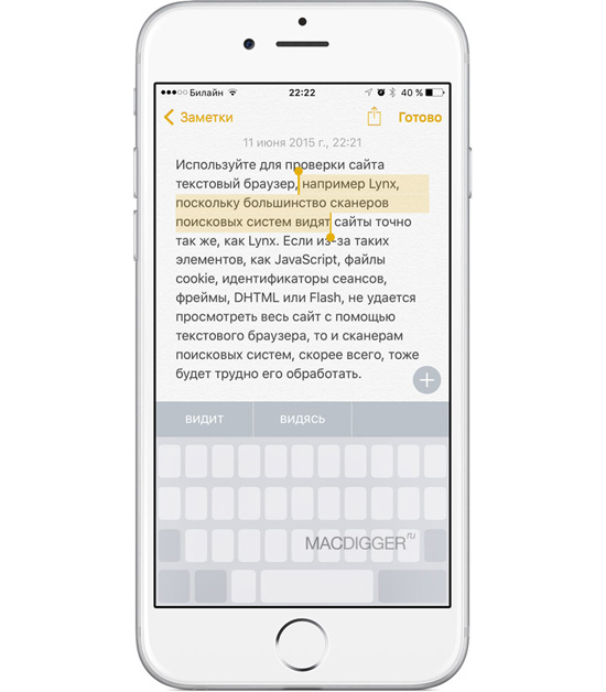 С выходом iOS 9 планшеты iPad получат обновленную клавиатуру, в которой появились новые клавиши для ускоренного копирования, вставки текста, и других действий. При этом виртуальный клавишный блок можно превратить в трекпад для управления курсором. Для этого нужно коснуться клавиатуры двумя пальцами, после чего можно легко выделить нужные фрагменты текста для копирования в буфер обмена. Как выяснилось, эта функция работает так же и на iPhone с iOS 9.