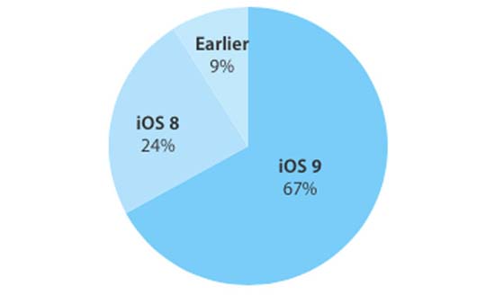 iOS 9 установлена уже на 67% устройств Apple
