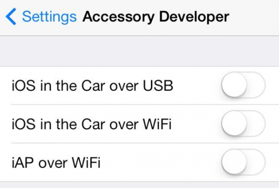 До сих пор было не совсем понятно, как iPhone «подружится» с тем или иным автомобилем. Пролить свет на эту тайну вызвались эксперты из Hamza Sood: на днях они опубликовали снимок экрана смартфона с настройками iOS in the Car.