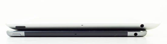 Довольно существенные различия, на самом деле. Ананд Шимпи из Anandtech сравнил iPad Air и iPad 4 самым простым способом — положив рядом (Air внизу)