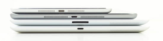 Сверху вниз: iPad mini, iPad Air, iPad 2 и iPad 4