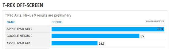 iPad Air 2 сравнили по производительности GPU с топовым Android-планшетом Nexus 9