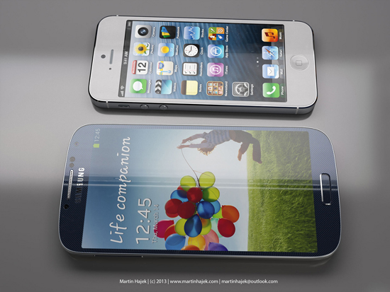 Хотя презентация нового флагмана Samsung уже прошла, девайс поступит в продажу только в конце апреля. Поэтому для желающих сравнить iPhone 5 с его очередным конкурентом известный 3D-художник Мартин Хайек создал виртуальные модели обоих девайсов: «Мне не терпелось посмотреть, как Galaxy S4 выглядит по сравнению с iPhone 5 — устроить такое столкновение мобильных титанов».