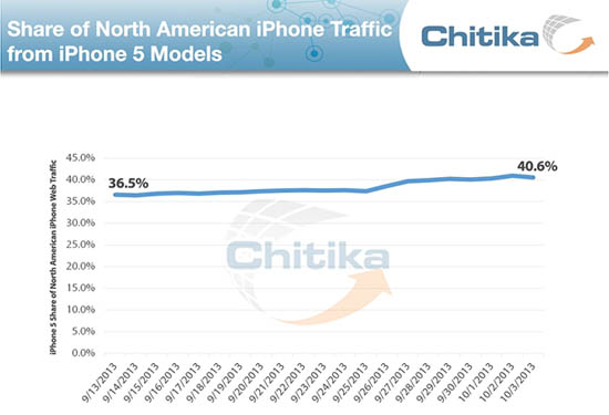 Более того, результаты последнего исследования аналитиков рекламного агентства Chitika доказывают обратное. На текущий момент смартфоны iPhone 5/5s/5c обеспечивают до 40,6% от месячного трафика в США. Такой показатель может действительно впечатлять, особенно если учесть, что продажи нового поколения смартфонов Apple стартовали лишь в прошлом месяце.