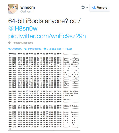 «iBoot в iPhone 5s – очень интересная штука, – написал Winocm. – Никому не нужен 64-битный iBoot?»