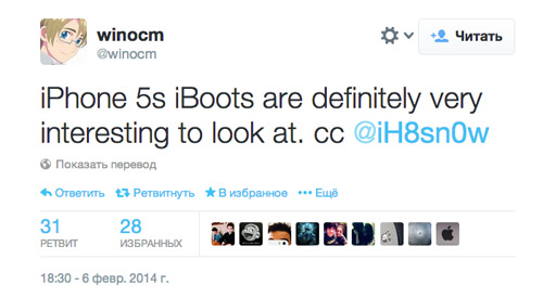 Новость о том, что относительно свежие устройства Apple с процессорами A5(X), могут получить «вечный» джейлбрейк, основанный на iBoot-уязвимости, появилась в твиттере iH8sn0w 2 февраля. Этим процессором, как известно, оборудованы смартфоны iPhone 4s, планшеты iPad 2, 3, iPad mini и плееры iPod touch 5G. Теперь же речь идет о флагмане iPhone 5s, который построен на последнем чипе A7. Правда об этой модели написал другой хакер Winocm, он упомянул в сообщении iH8sn0w.