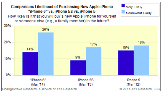 Весной 2013 года глава Apple Тим Кук заявлял, что компания не станет увеличивать экран iPhone, пока это несёт в себе компромиссы для удобства, а в начале 2014 года уточнил, что это произойдёт только тогда, когда она сможет создать экраны надлежащего качества. Согласно исследованию, опубликованному 10 апреля изданием CNN Money, слухи об увеличении размеров дисплея в iPhone 6 сделали устройство заметно более желанным в глазах покупателей.