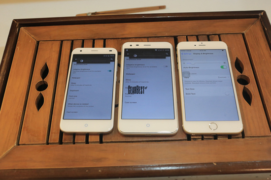 По габаритам Blade S6 занимает нишу между iPhone 6 и iPhone 6 Plus. Держать в руках смартфон удобно, к эргономике в ZTE относятся с должным вниманием. Blade S6 располагает 5-дюймовым экраном, старшая модификация Blade S6 Plus – 5,5-дюмовым. В обоих моделях экран имеет разрешение 1280 х 720 пикселя, в то время как iPhone 6 Plus оснащен ЖК-панелью 1920 x 1080 точек.