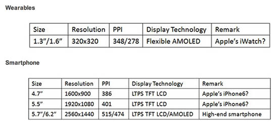 Исследовательская компания DisplaySearch опубликовала свои прогнозы относительно следующего поколения устройств Apple. Согласно ожиданиям аналитиков, новый iPhone получит дисплей высокого разрешения размером 5,5 дюймов, а «умные часы» iWatch будут использовать технологию AMOLED.