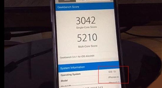 В пользу этого говорят появившиеся сегодня фотографии смартфона с включенным экраном и запущенным бенчмарком Geekbench, где помимо результатов тестирования новинки фигурирует и ее название – «iPhone 6 SE». Аппарат работает под управлением iOS 10, что придает изображениям еще большую достоверность.