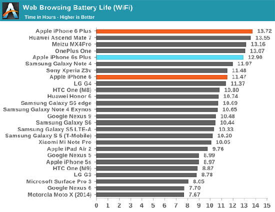 «Примечательно, что время автономной работы iPhone 6s Plus, похоже, ниже, чем у iPhone 6 Plus и составляет около 12,9 часов – на 6% меньше, чем у предшественника».